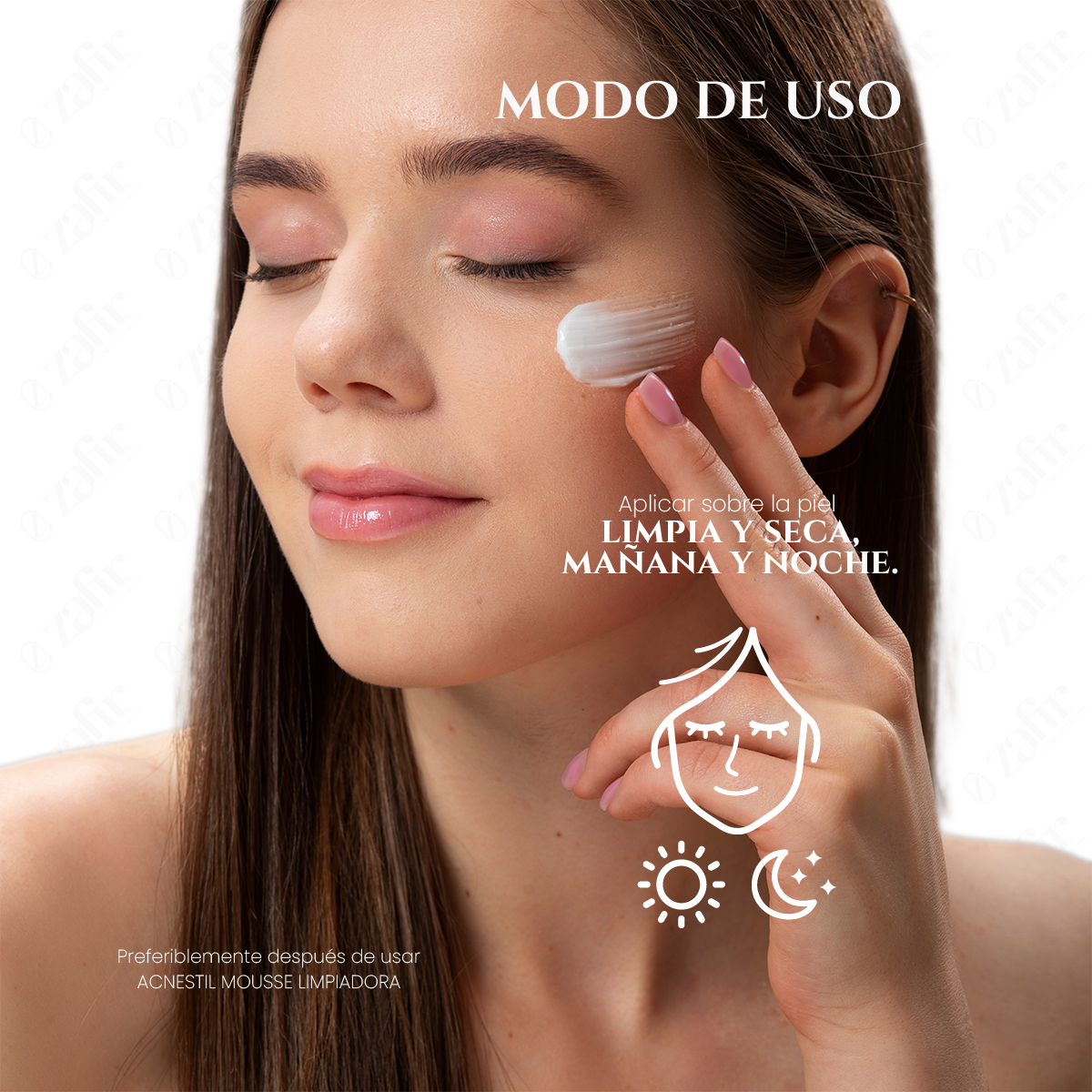 Aplicar mañana y/o noche sobre la piel del rostro limpia y seca, con un suave masaje hasta su completa absorción. Uso externo.
